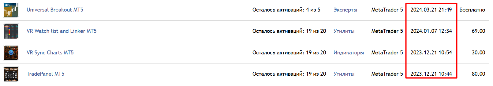 Приобретенный программы и даты покупки во вложенном ниже файле!
