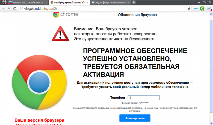 Делал сканирование антивирусом Comodo, выявилось три потенциально опасных объекта, согласился поместить их в карантин. Но после запуска браузера страница с предложением обновления опять появилась. Делал так же на всякий случай восстановление системы.