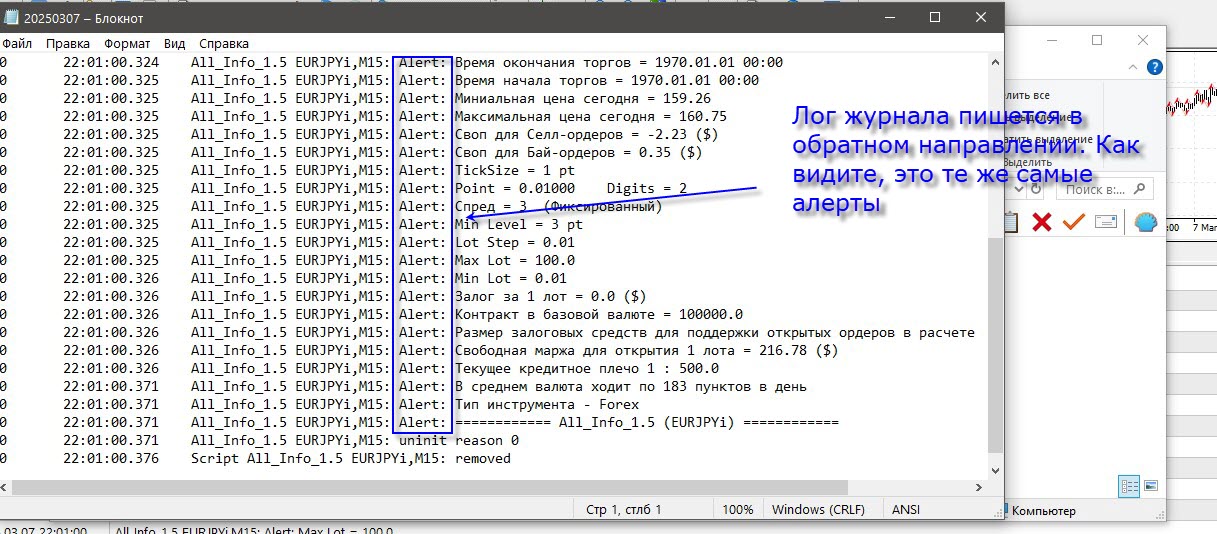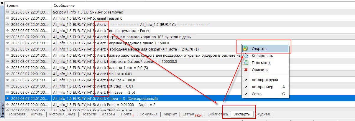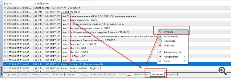 Все алерты дублируются в журнал. Туда же пишутся и принты. Их можно легко считать оттуда. Смотрите, у меня на скриншоте сработал алерт. Я через правую кнопку мыши могу получить доступ к файлам журнала.