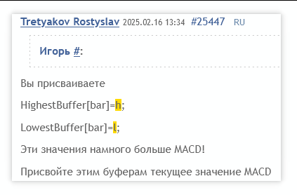 Вам нужно было просто h и l на ExtMacdBuffer[bar]