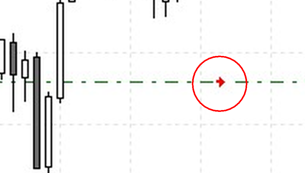 На картинке видно - если условно задать такой стрелке уровень 1.5 и горизонтальной линии также установить уровень цены 1.5, то линия будет посередине стрелки, а не сверху или снизу.