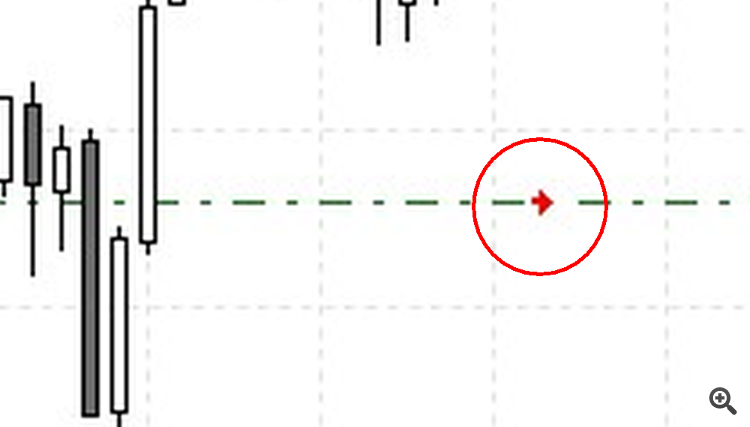 Например вручную на график устанавливается 'стрелка вправо' с центром на уровне цены 1.5,