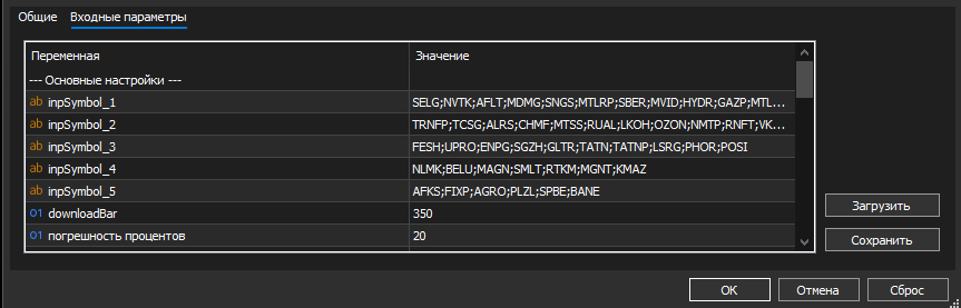 Это скрин из настроек мультивалютного советника.