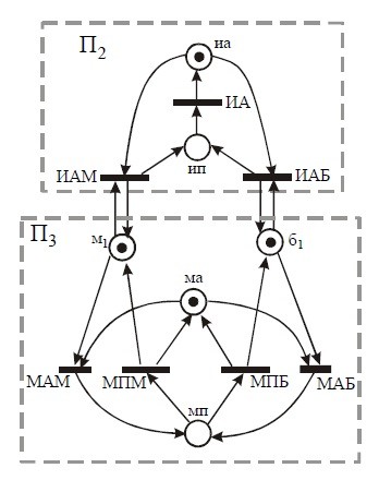 Переходам сети Петри на рисунке соответствуют следующие процессы: