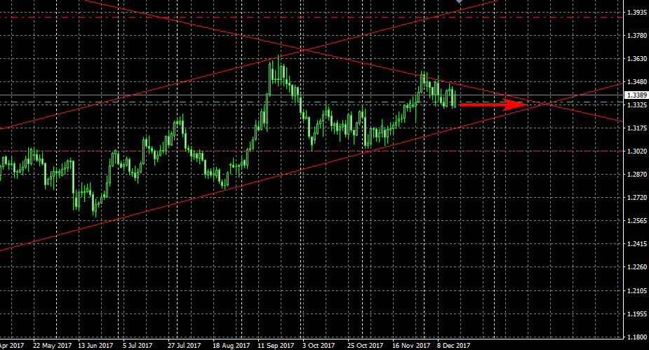 На D1 видно, как GBPUSD стремится в угол фигуры, образованный линиями (углами) Ганна. Согласно этой теории, до Нового года движений никаких не будет, только флэт. Через 1-2 неделю после Нового года ожидается резкое движение в какую-то сторону.