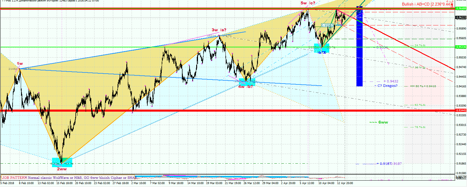 три касания, двойная вершина, Вульф с ТР 0.9432