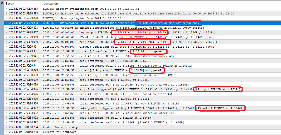 "В этом режиме генерируются OHLC-цены баров выбранного для тестирования таймфрейма. Функция эксперта OnTick() выполняется только в начале бара (по цене Open). Из-за этой особенности стоп-уровни и отложенные ордера могут срабатывать по цене, отличной от заданной (особенно при тестировании на старших таймфреймах). Но это позволяет быстро провести оценочное тестирование эксперта".
