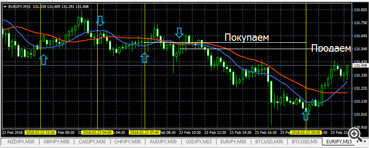 когда параллельно используем два-три пары мувингов с разными периодами.