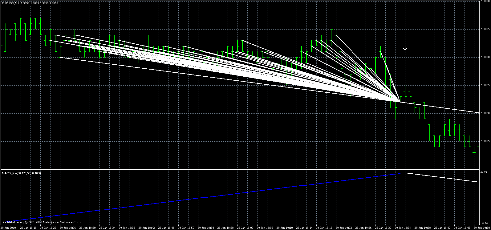 Привет, Дима. Я тоже наткнулся случайно в тестере. EURUSD, М1, 50-170-50. Причем рисует трендовые задним числом. И сепаратный график постепенно превращается в "забор". При переинициализации все восстанавливается. Стрелки не меняются. Кстати, хорошо бы их вывести в буферы для более удобного использования в эксперте.