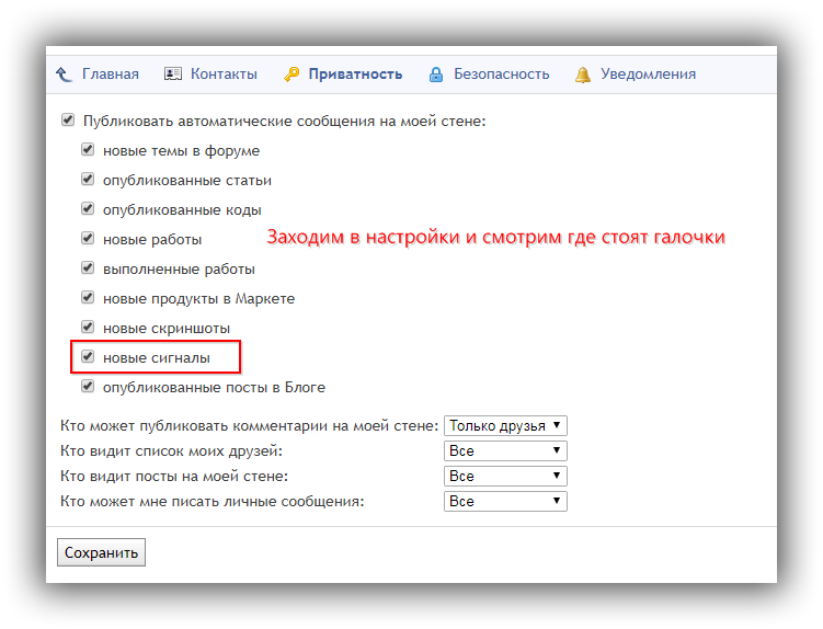 Подскажите, почему мой сигнал не отображается у меня в ленте новостей ?