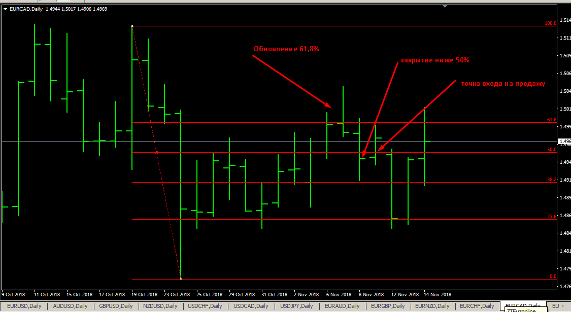есть сигнал BUY который построился из недавних экстремумов. Чуть позже него появился SELL но на основе более старых экстремумов.