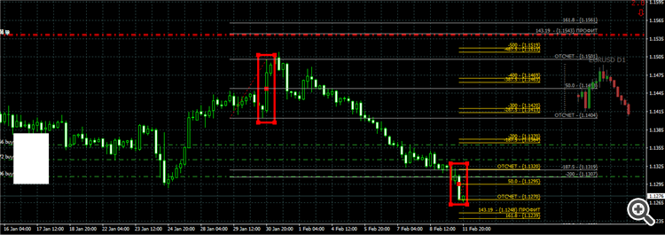 А так по EURUSD, если сетку фибоначи на недельном графике натянуть, то топчемся у 38.2... но тут такой момент что цена может нырнуть и под уровень 38.2 и даже дойти до 23.6...поэтому важно не ошибиться с ценой, по которой евро пытаться покупать...