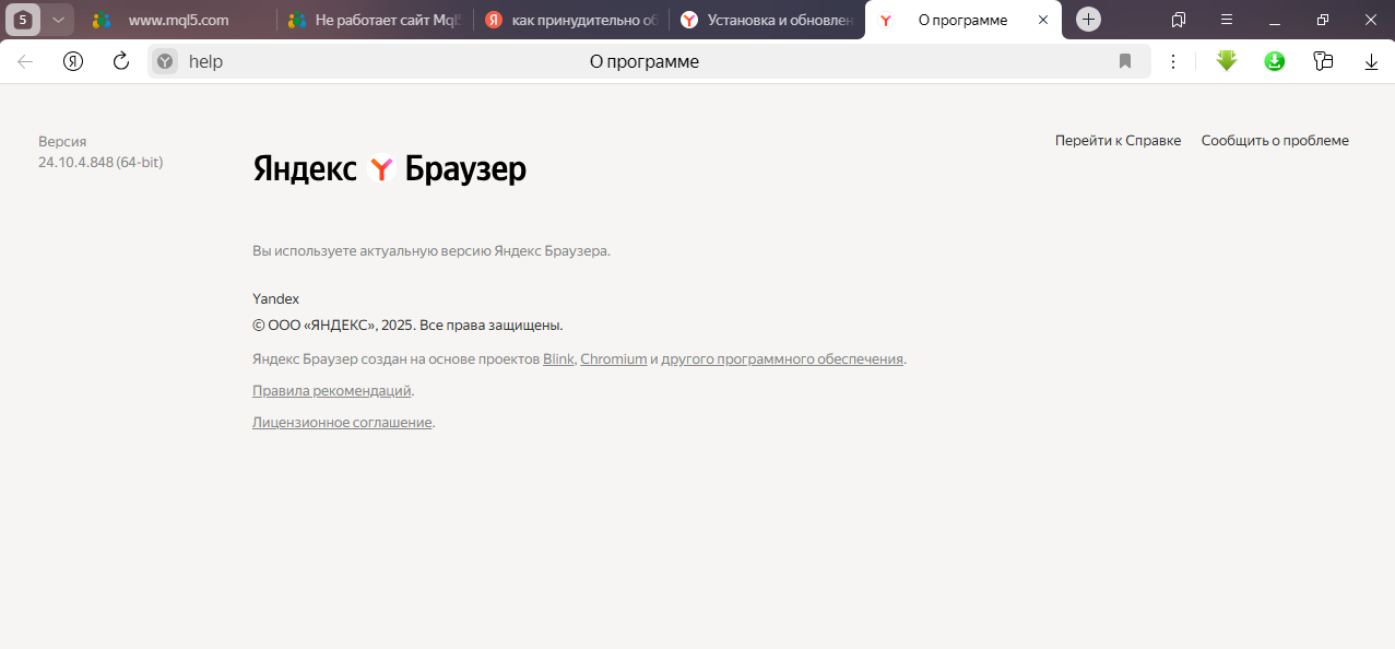 попробуйте принудительно (в ручном режиме) обновить браузер. В меню браузера пункт "О программе" а там :