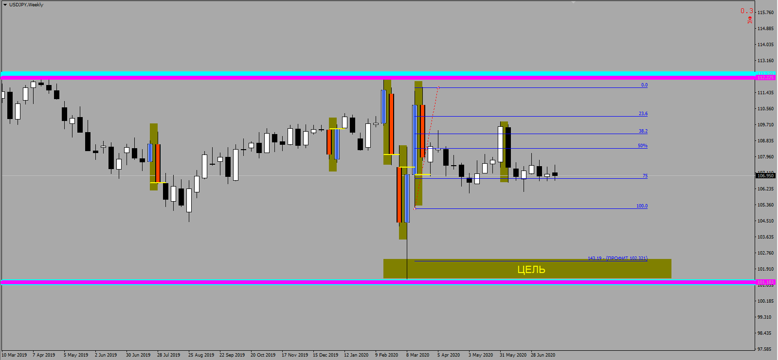 Йена сходит вверх на 107.70 и вернется на 106,60