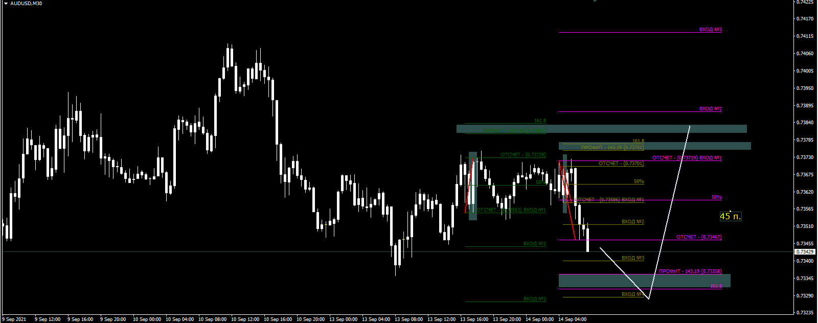Вот вход по Ауди с профитом в 45 п. (после отработки часового сигнала в шорт)