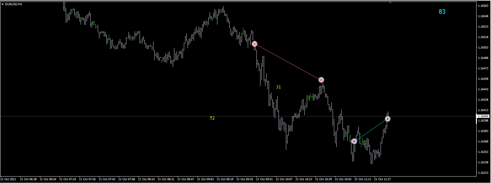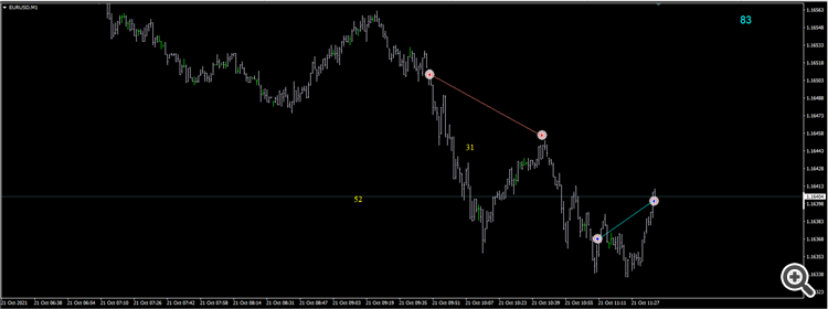 на минутках(внутри-часа это называется) - точка входа, а на часах(внутри-дня) и на Д1 основное направление, в котором идет сделка, а внутри-час - точная сделка со стопом. Дело в том, что у каждого инструмента - есть среднедневной АТР, то скоко он проходит за целый день в среднем, поэтому что поймать ход - у него длинна быть процентов 10-20 от АТР, то есть от 10,0 -до 30,0 пунктов, тогда прогнозы часто сбываются, а если ловить ход в 100,0 пунктов - то очень тяжело такое движение отловить