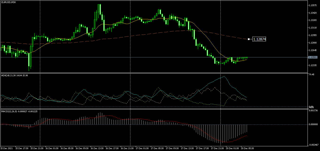 EUR\USD-M30 индикаторы показывают мне, что двинет к 1.12874 (МА-144 MODE_EMA)