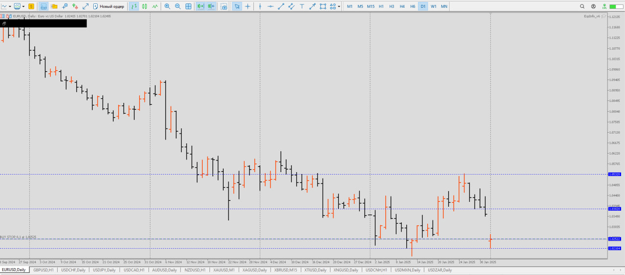 Евро доллар на этой неделе (03.02.2025-07.02.2025) вниз больше чем на 300 пипсов не пойдет. Он вверх пойдет или флэт будет