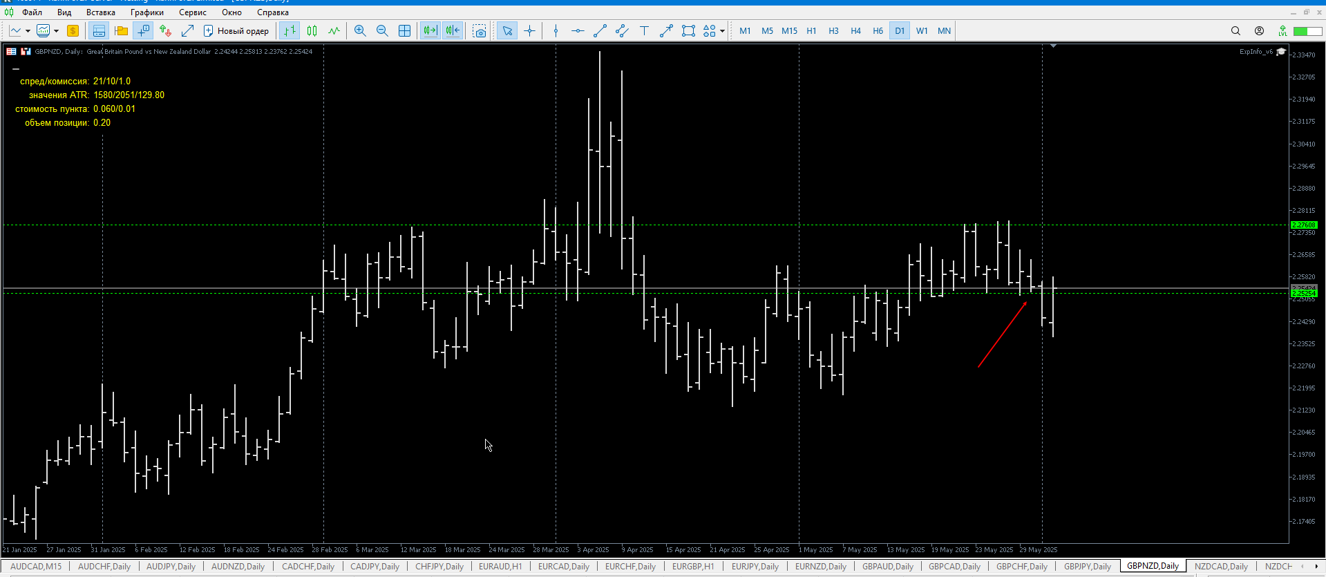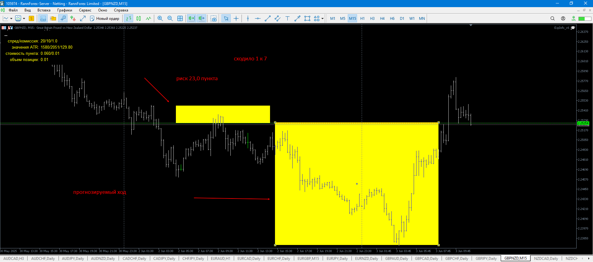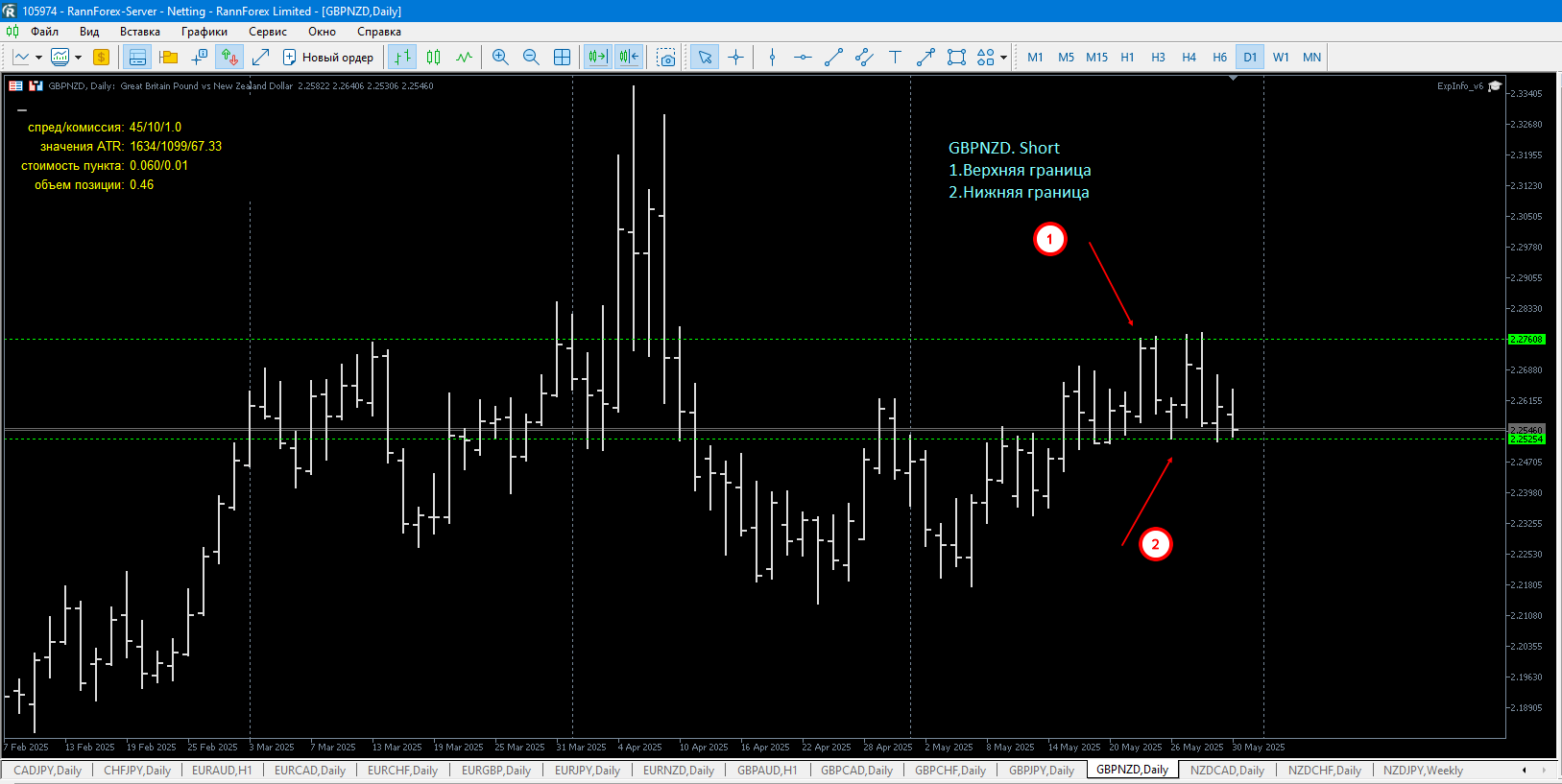 если уверен что от обоих границ вниз, и их ширина в 1 типичную свечу, то к чему они ? сразу вниз - цена ведь 100% достигнет одного из уровней, и по тер.веру скорее нижней (она к нему впритык) то есть вход будет хуже чем "сразу"