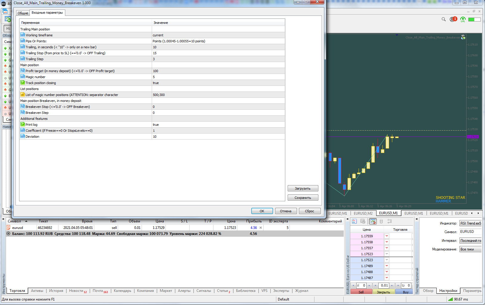 Советники: Close All Main Trailing Money Breakeven
