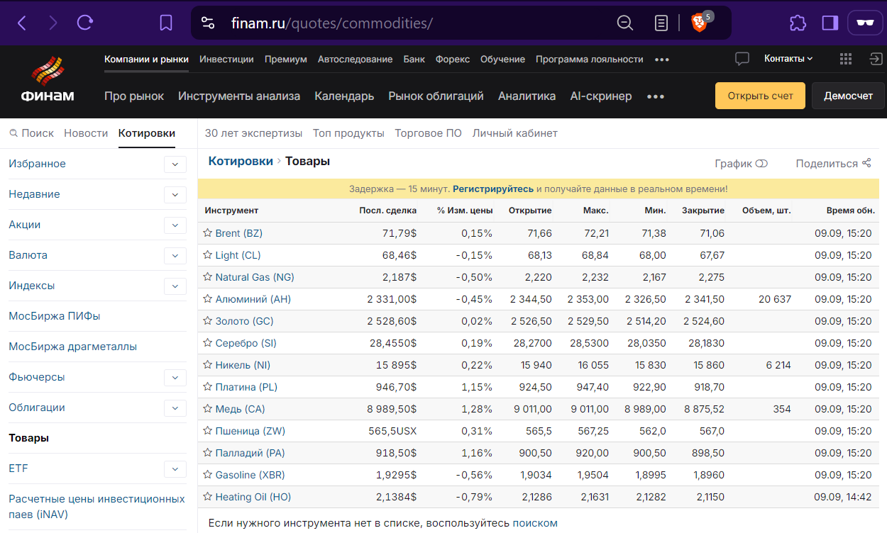 Подскажите можно ли в Финаме торговать тикерами товарной группы (нефть, газ, металлы и пр.)? Например, в соответствующем разделе их сайта есть табличка с тикерами, в частности, алюминий (AH), пшеница (ZW), но в списке доступных для торговли инструментов (тоже на их сайте смотрю) нет ничего похожего.