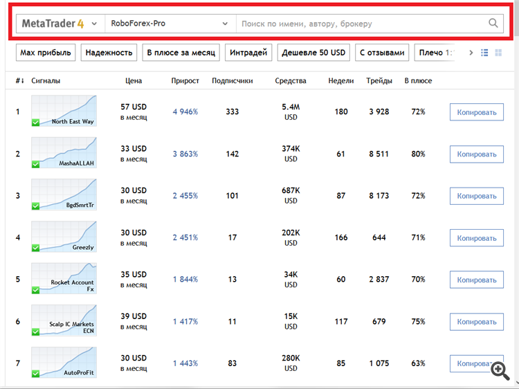- 8 000+ сигналов для копирования