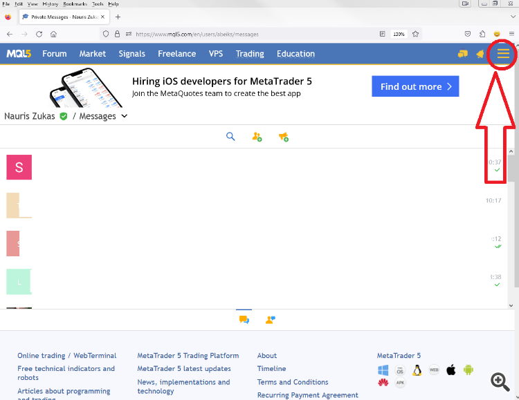 На странице "сообщения", если страница увеличена и видны 3 полоски в правом верхнем углу, то нажатие на эти 3 полоски выводит пустую панель.
