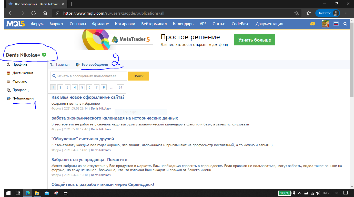 заходим в профиль -"Публикации"