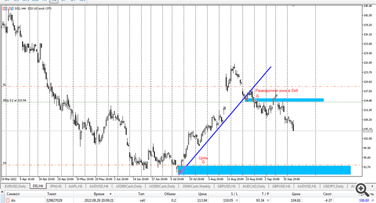 Сделка по акции DIS-The Walt Disney Company, также известна как Disney — один из крупнейших медиаконгломератов индустрии развлечений в мире