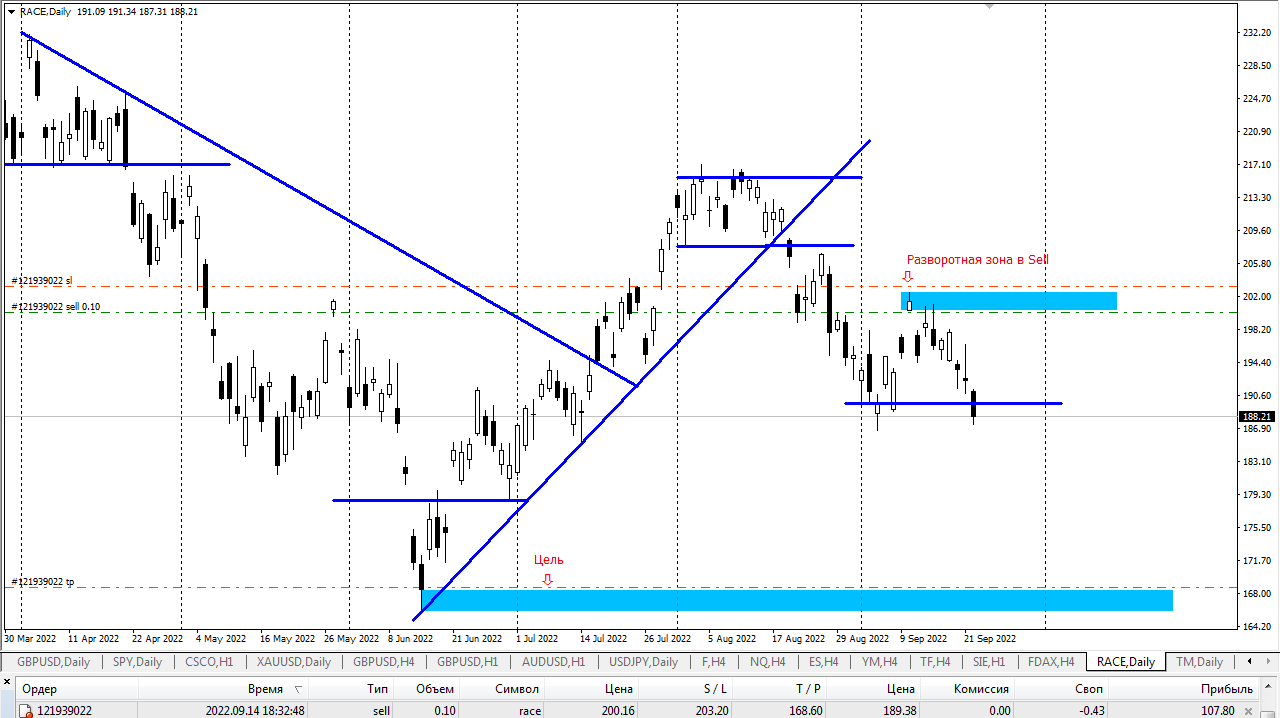 Сделка по акции RACE- Ferrari — «Ферра́ри» — итальянская компания, выпускающая спортивные и гоночные автомобили.