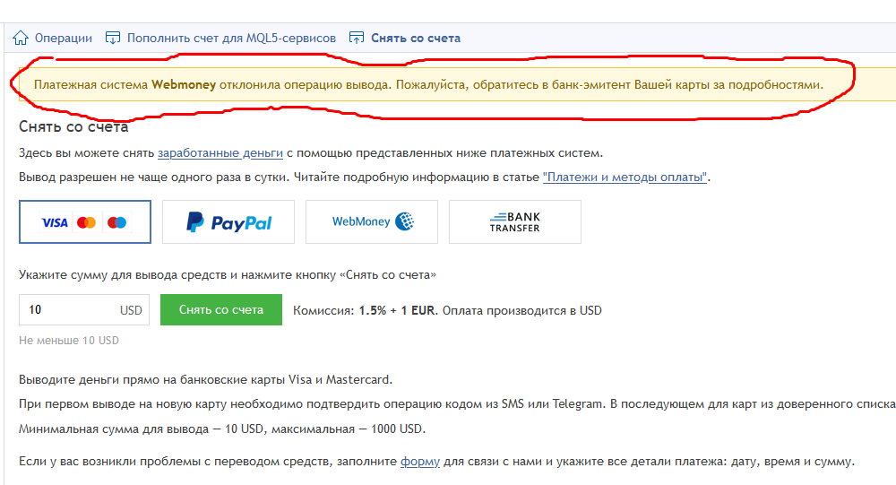 Перестал работать вывод на Webmoney.