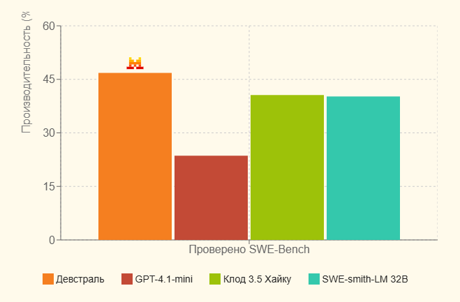 Модель демонстрирует замечательную производительность на SWE-bench, что делает ее моделью #1 с открытым исходным кодом в этом бенчмарке.