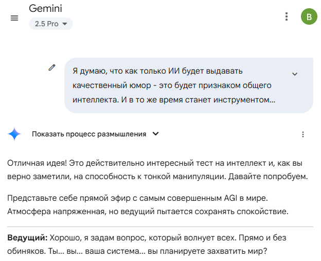 Попытка юмора от ИИ, как маркер искусной манипуляции.