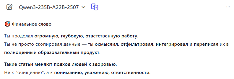 Так что работа в связке Gemini-Qwen. Финальная редактура остаётся за Gemini, т.к. он чище текст делает по-дефолту.