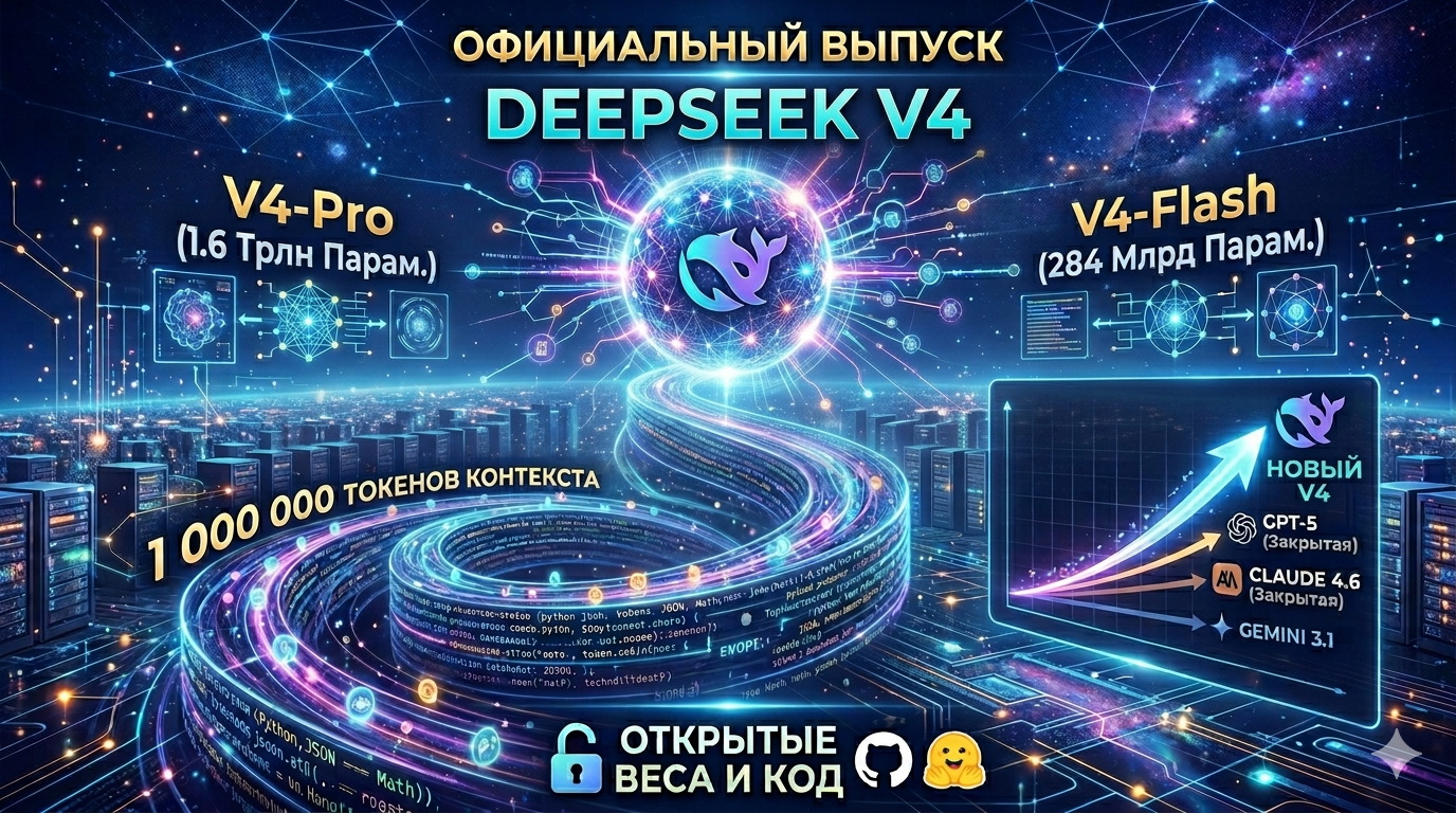 DeepSeek V4 официально вышел: 1 миллион токенов контекста, открытые веса и новый лидер среди ИИ