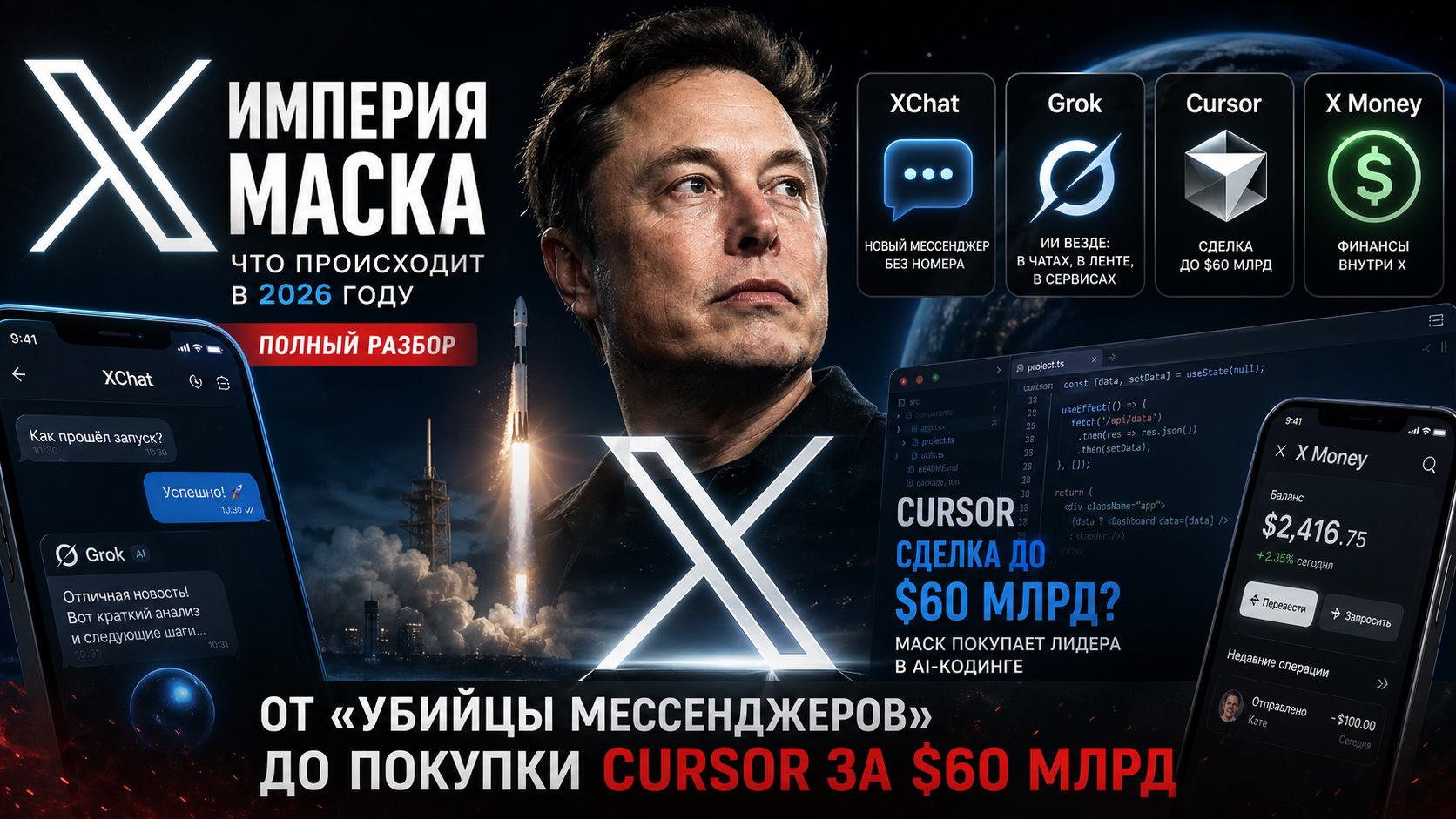 Что происходит с империей Маска в 2026 году: от «убийцы мессенджеров» до покупки Cursor за $60 млрд