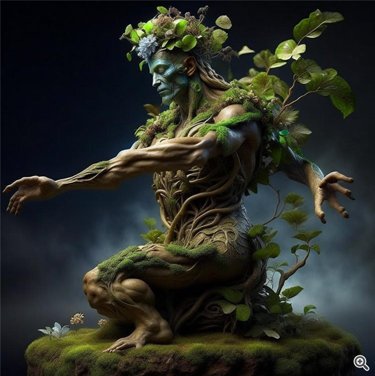 An Earthbound entities known as 'Earthean', an amalgamation of natural elements with humans form. The figure embodies a vision of harmony between humanity and nature. Details should evoke a sense of awe, with lush greenery and floral patterns subtly forming the shape of the humanoid. The Earthean's skin is a gentle terrain of grassy hills, mountains, and meandering rivers. Its eyes reflect the depth of clear, blue oceans while its hair appears as a waterfall cascading over the shoulders. Captured in the photographic style of a raw 8K image, this masterpiece showcases unparalleled realism and ultra - detailed rendering of every element, from the unique textures of her skin, the haunting glow of her eyes, to the intricate details of her high - fashion garment. Shot on a Fujifilm XT3, the image leverages professional lighting and photon mapping to emphasize her intriguing features and the dramatic contours of her wavy hair against a stark gray background. A film grain effect imparts a vintage charm to the overall composition. The resulting image encapsulates an indoor, ultra - high definition scene with an impressive resolution of 20 megapixels, highlighting the model's detailed skin, face, and medium - length hair, rendering her as an unprecedented sight in the realm of fashion photography. —ar 3:4 —s 1000 —q 2 —c 9 —v 5.1 —s 750 —style raw —style raw