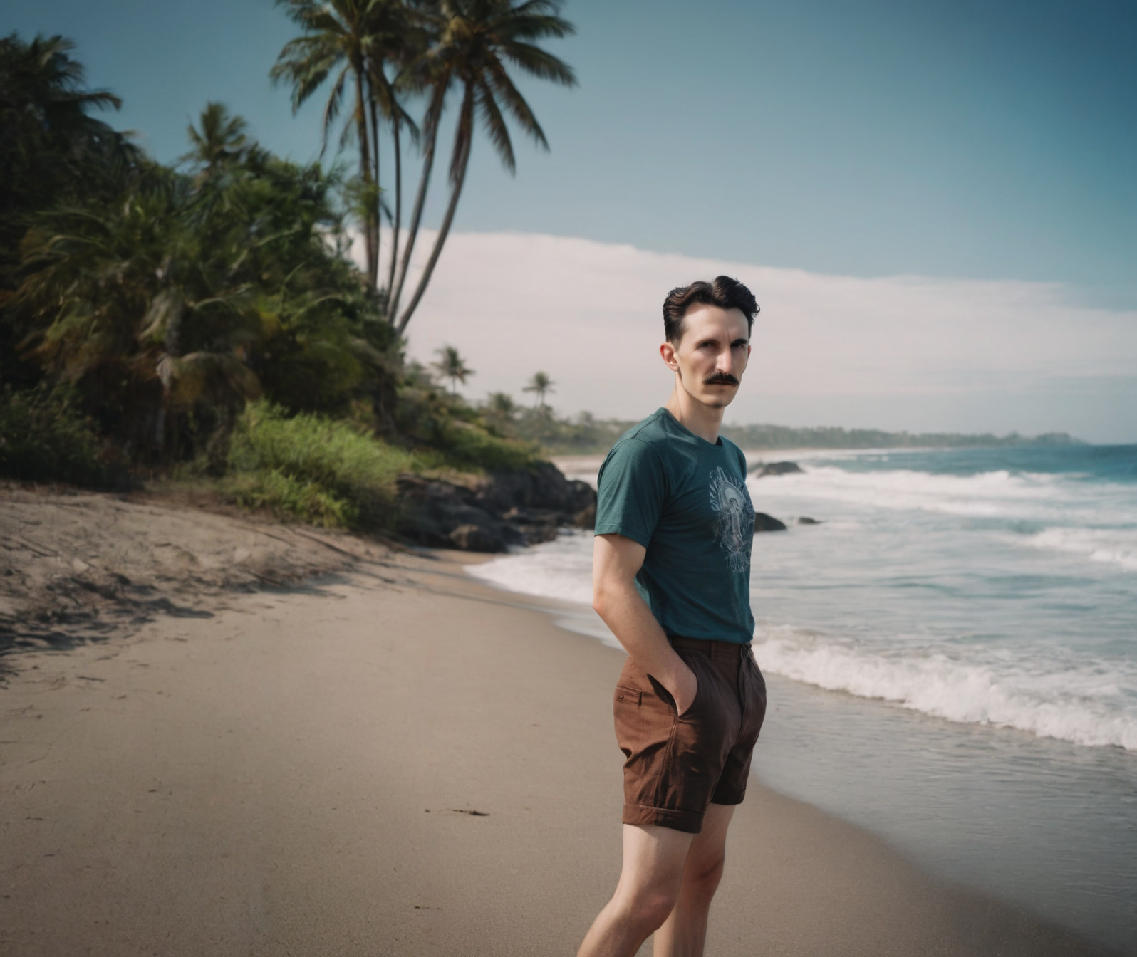 Никола Тесла на пляже. Fooocus Reailistic mode
