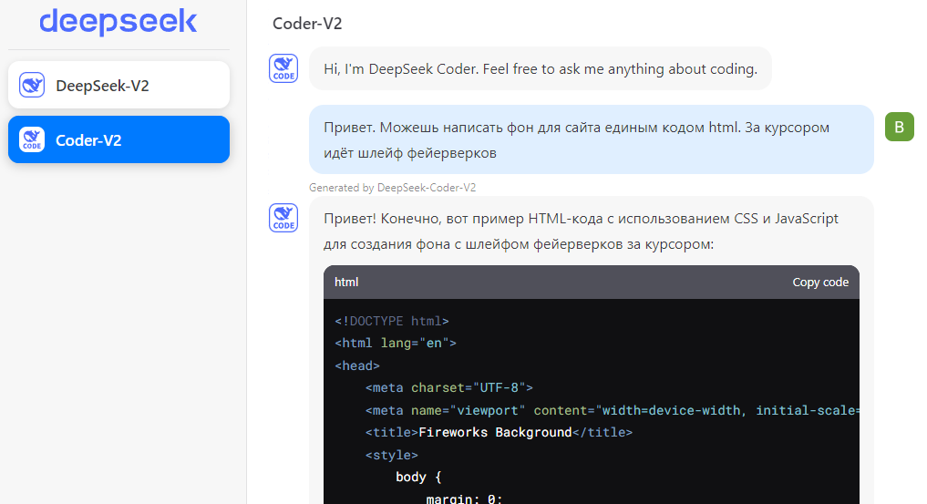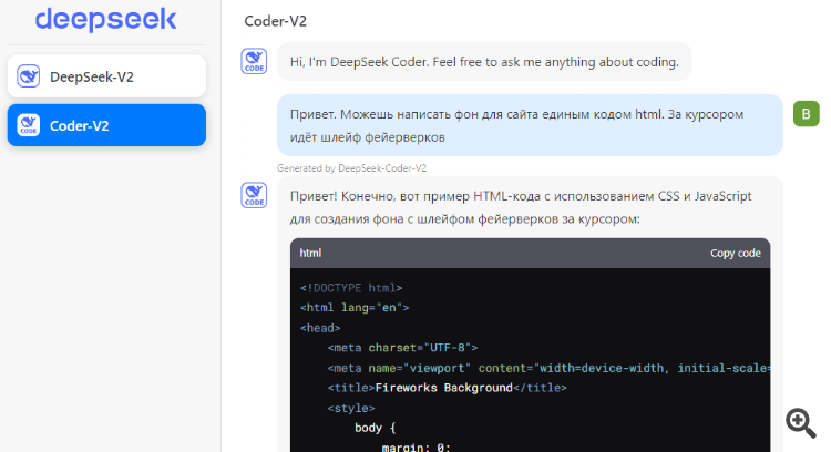 Генерация кода тут - DeepSeek