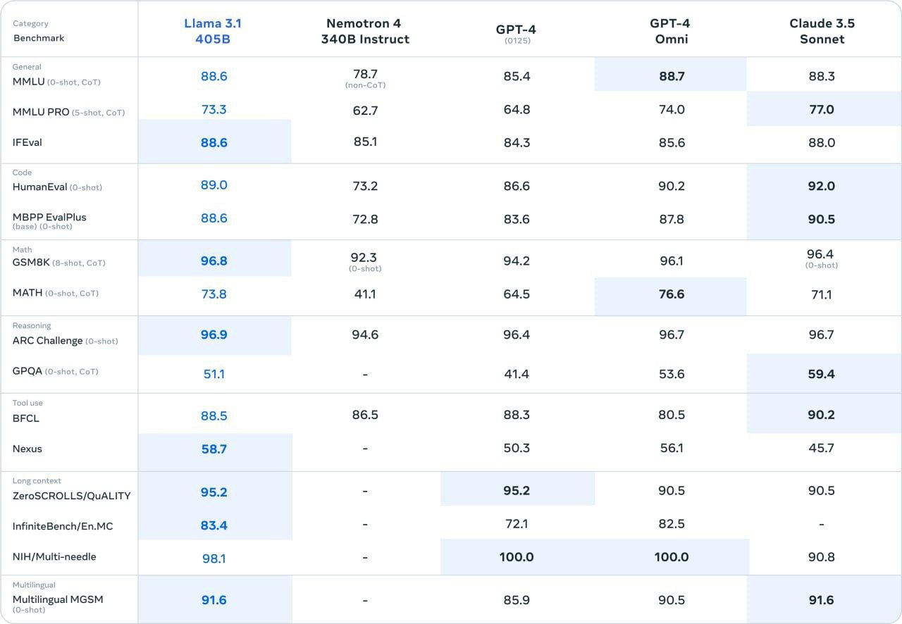 //Для тренировки Llama 3.1 использовался кластер в 16 000 видеокарт H100. А ведь она обогнала по некоторым параметрам самый передовой GPT-4O.