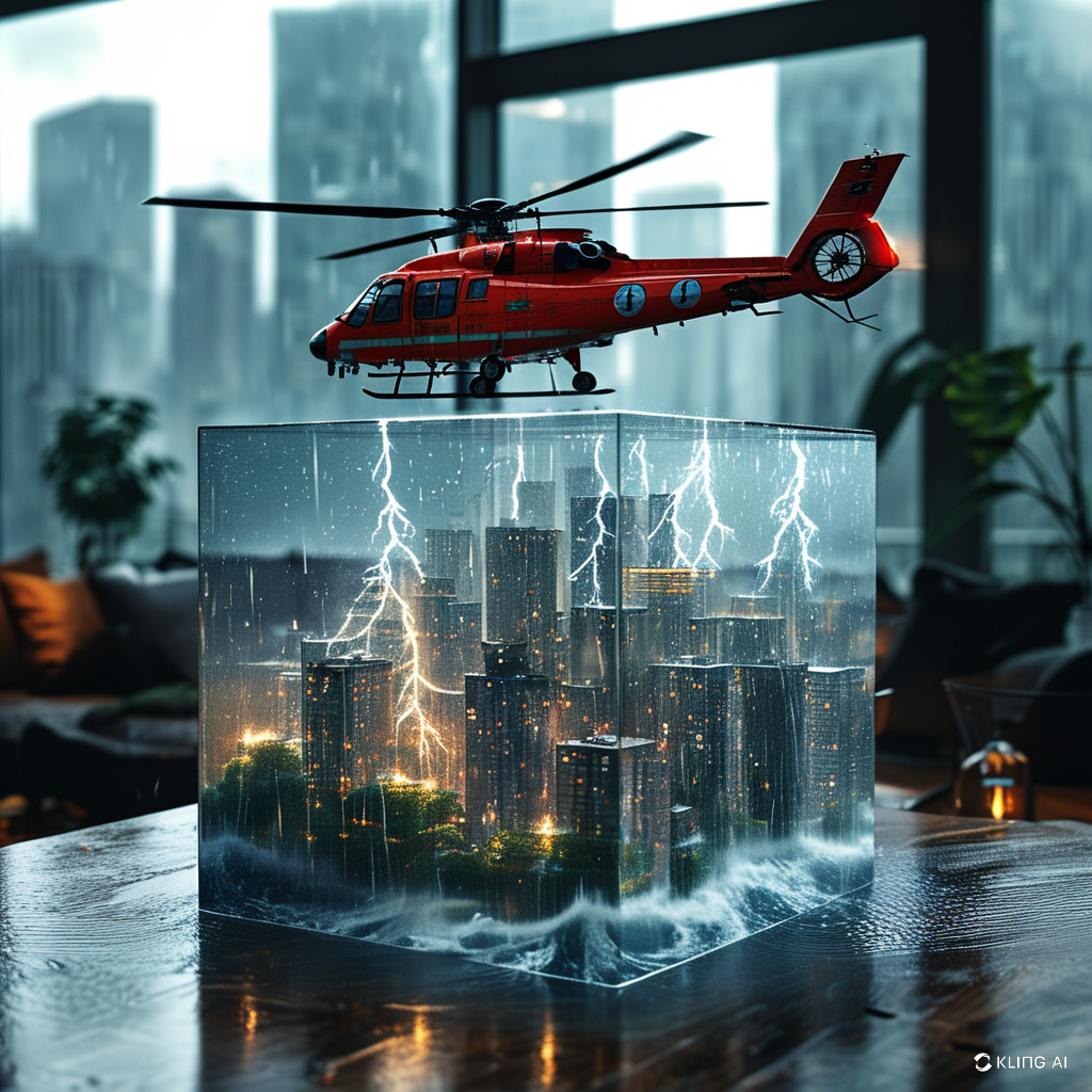 Игрушечный вертолёт на спасении людей игрушечного города: