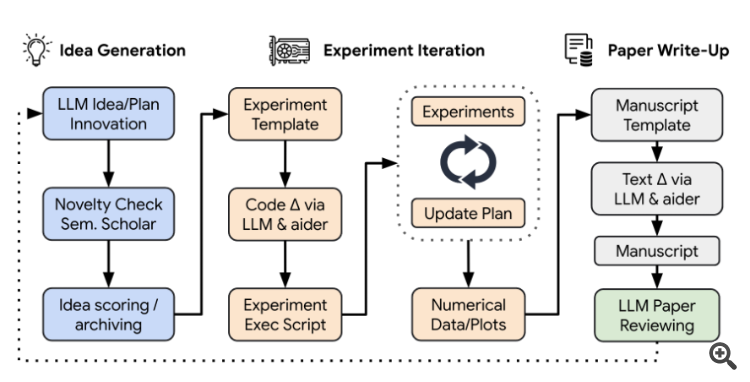 • Цель - автоматизация всего процесса исследования с использованием базовых моделей, таких как Large Language Models (LLM).