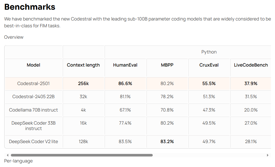 ИИ Codestral, заточенный под написание кода обновился до версии 25.01 и сразу попал на первые места различных рейтингов.