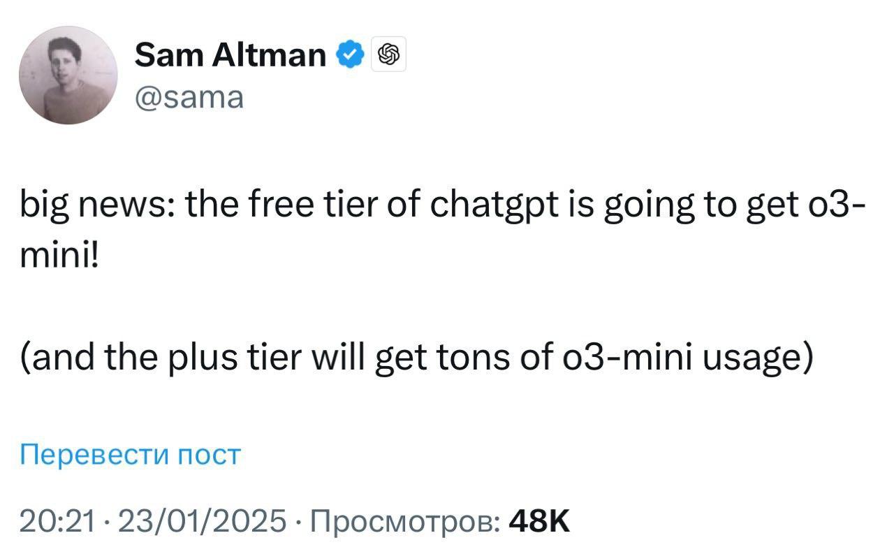 Кстати с ним борется Алекс Кристофору с канала Дюран (ну у него ещё напарник Александр Меркурис).Собственно ChatGPT o3-mini сделают бесплатным. А это, на минутку, ИИ-программист мирового уровня.