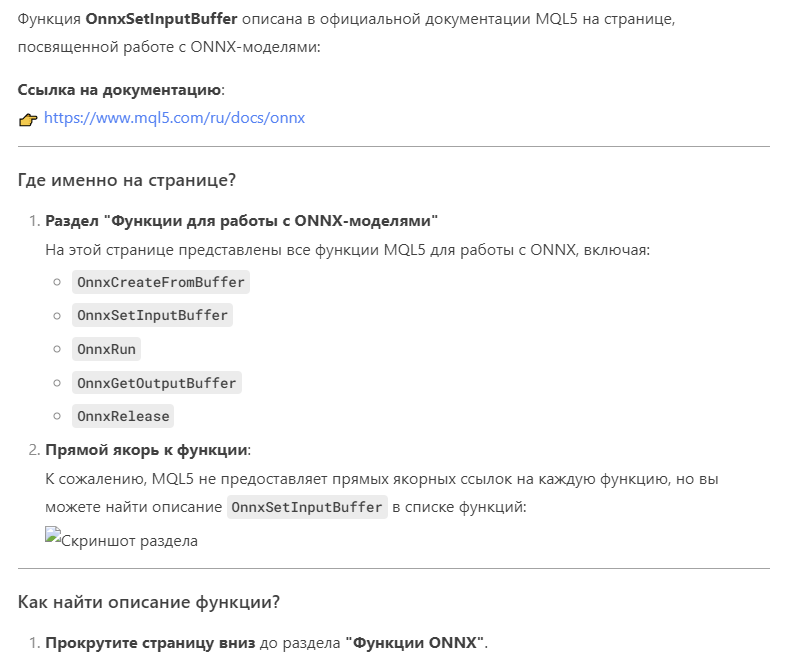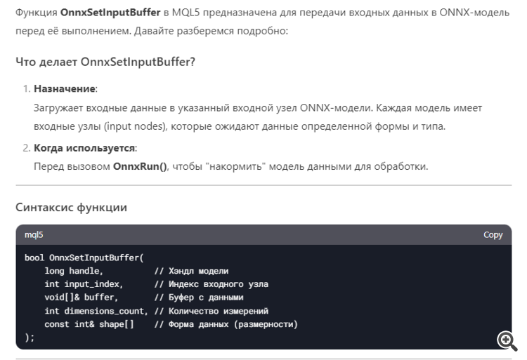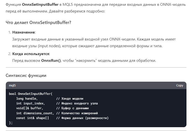 Может я слепой. Но не нашёл такой https://www.mql5.com/ru/docs/onnxА вот на что он ссылается https://www.mql5.com/ru/docs/onnx/onnxsetinputbuffer