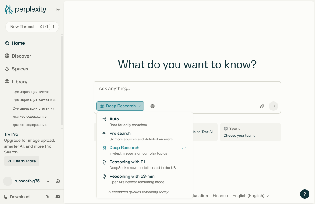 Perplexity добавила функцию глубокого исследования (Deep Research).