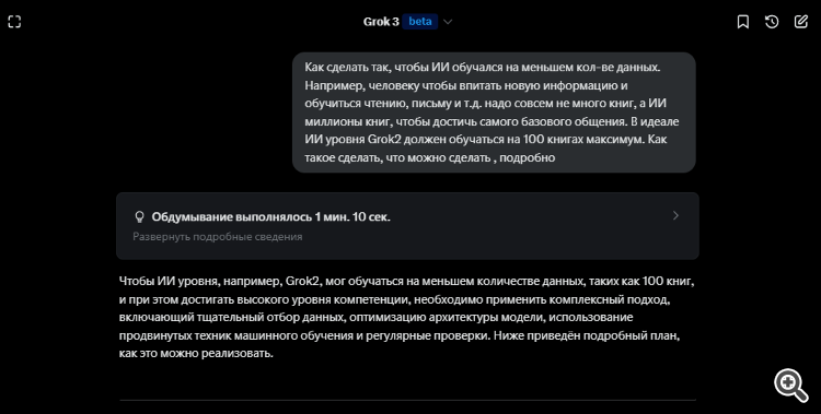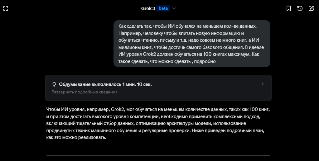 Ответ Grok3 с функцией Think: