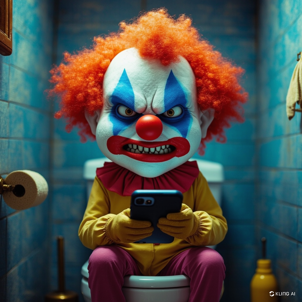 Как пример: клоун в перерыве от работы заперся в толчок и пытается найти троллей