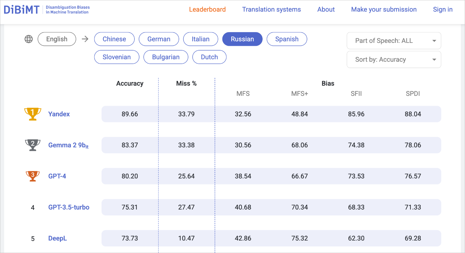 Там Accuracy для варианта English->Russian заметно больше остальных English->XXX.