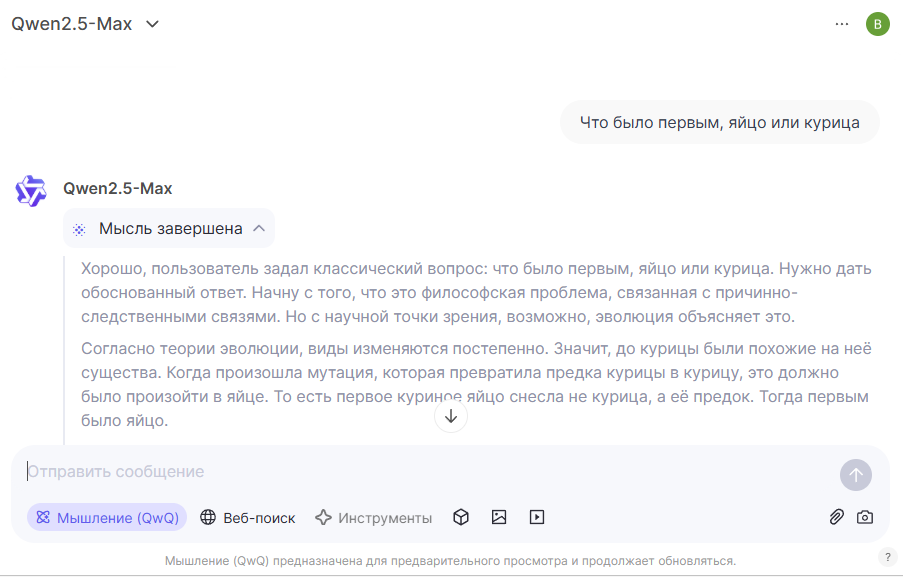 В чате Qwen появился тэг "Мышление" - https://chat.qwenlm.ai